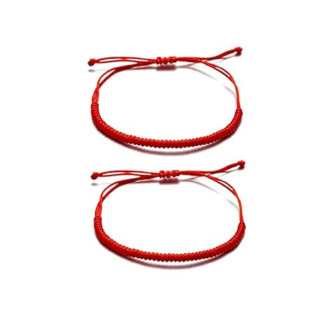 Generic 2PCS String Bracelets for Women Men Handmade Red Black Buddhist Tibetan Woven Rope Bracelet for Protection and Luck Friendship Bracelet