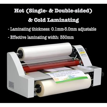 • Generic 350mm Laminator Machine, Cold Hot Roller Laminating Machine, Single- & Double-Sided Thermal Laminator for Paper Card Wood Veneer PVC Foil, Digital Display, Safety Protection (V350), 6333-350