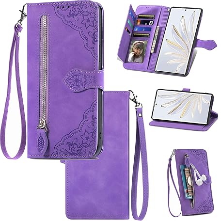 Generic Compatible with Rakuten Hand Case,Wallet Zipper Card Holder,Compatible with Rakuten Hand 5G PU Leather Flip Stand Magnetic Closure Phone Cover Pur
