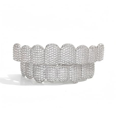 Generic Diamond Grillz for Men 8-Tooth Micro-Paved Zircon Full Coverage Iced Out Luxury Statement Hip Hop Party Nightclub Performance