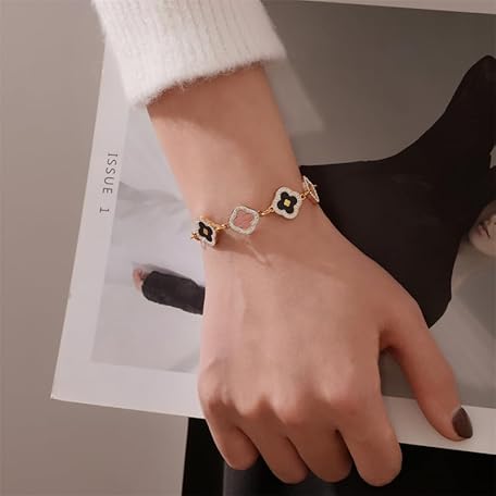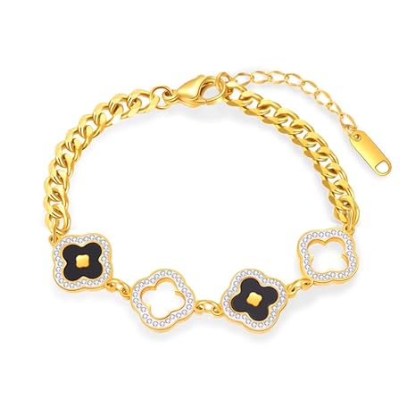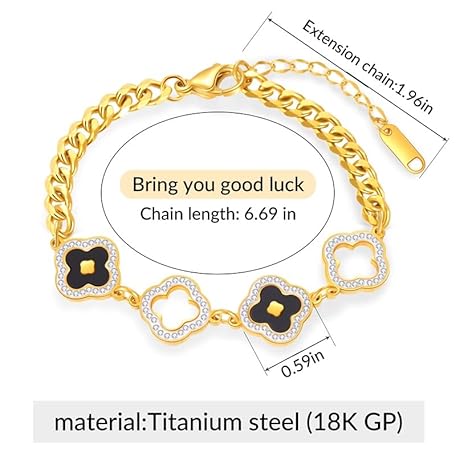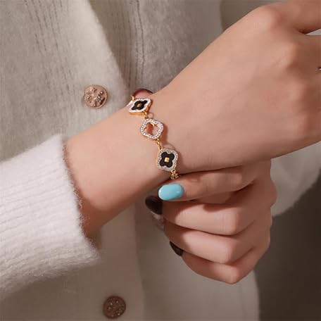 Generic Four Leaf Clover Bracelets for Women, 18K Gold Plated Clover Jewelry Set-Tone with Green Enamel Clover Charms, Crystal Accents, Elegant Gift for Women Packed in a Packaging Box (Black)