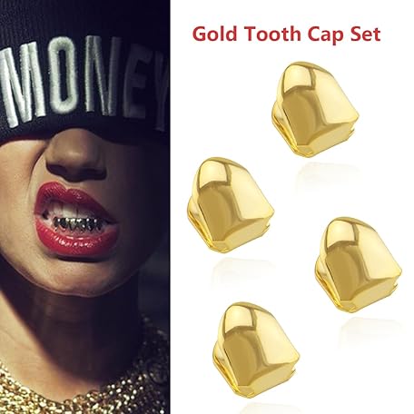 • Generic Gold Grills for Teeth 18K Gold Plated Tooth Caps Single Teeth Caps Hip Hop Grillz