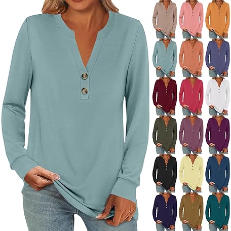 Generic Long Sleeve Shirts for Women Spring Henley Business Casual Tops Cute T-Shirts Work Blouses Outfits Vacation Clothes