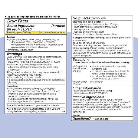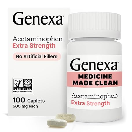 Thông tin sản phẩm Genexa Clean Acetaminophen 500mg Extra Strength, Dye Free Pain Reliever Fever Reducer, 0% Artificial Additives, Pain Medicine for Adults, Relieves Headache, Backache, Minor Arthritis Pain, 100 Tablets