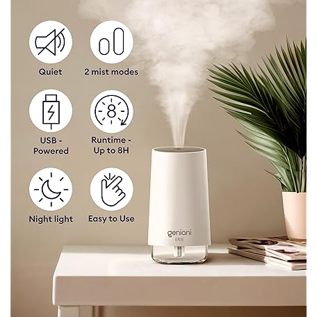Thông tin sản phẩm GENIANI Portable Cool Mist Humidifiers for Bedroom & Office - Ultrasonic Humidifier for Home, Baby, Small Room with Auto Shut Off, 250ML Easy to Clean Water Tank