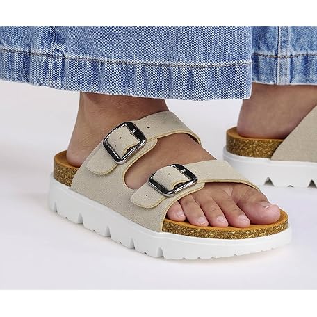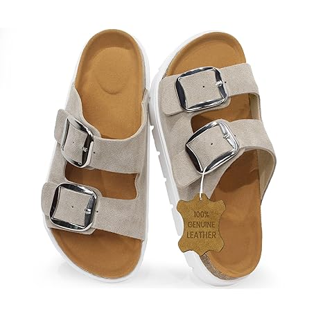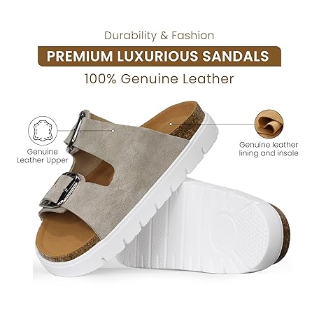 • Genuine Leather Platform Sandals Wedge Chunky Platform Sandal-Women Sandals with EVA Memory Foam Sole and Cork Footbed