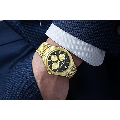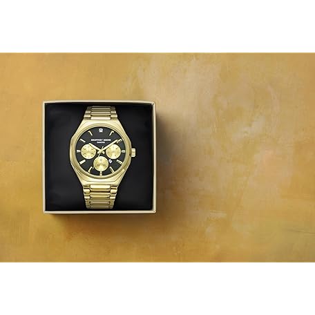 Geoffrey Beene Men's Black Chronograph Stainless Steel Dress Watch Classic Quartz, Elegant Design, Water-Resistant (Gunmetal)