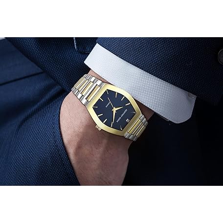 Geoffrey Beene Men's Two Tone Gold Stainless Steel Dress Watch Classic Quartz, Elegant Design, Water-Resistant