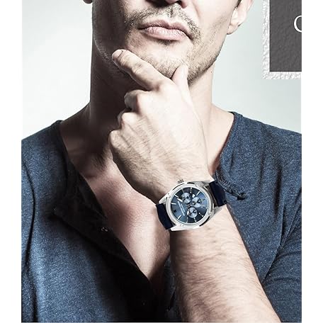 Thông tin sản phẩm Geoffrey Beene Mens Watch - Elegant Leather Strap Quartz Movement Analog Watch for Men, Gift for Men, Minimalist Wrist Watches with Chronograph Look 41mm (Blue)