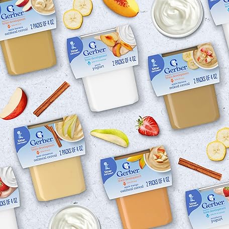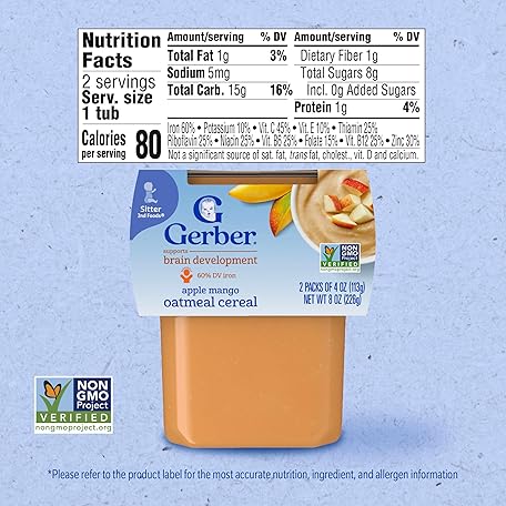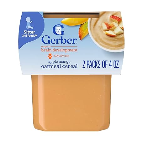 Thông tin sản phẩm Gerber Baby Food 2nd Foods, Mixed Cereal, Apples & Mangos with Rice Cereal Puree, 4 Ounce Tubs, 2-Pack
