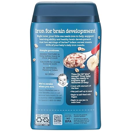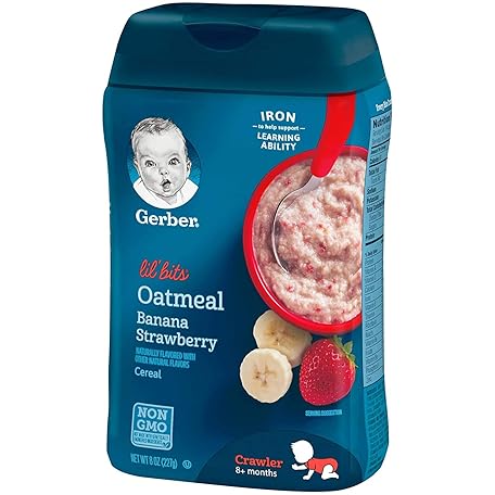 Thông tin sản phẩm Gerber Lil' Bits Baby Cereal, Oatmeal Banana Strawberry, 8 Ounce (8 oz (Pack of 2))
