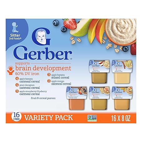 Thông tin sản phẩm Gerber Stage 2 Baby Food, Baby Fruit And Cereal Tubs Variety Pack, Iron Helps Support Brain Development, No Artificial Flavors, Baby Cereal, 32-Pack