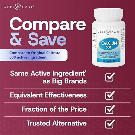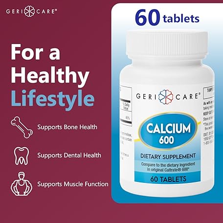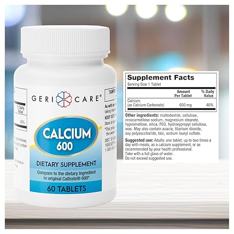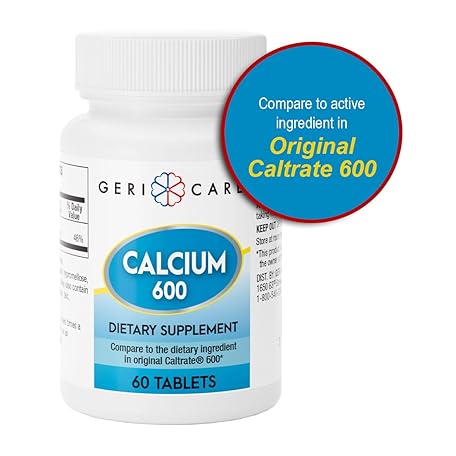 Gericare Calcium 600mg Supports Bone Health, Nutritional Supplement, 60 Count (Pack of 1)