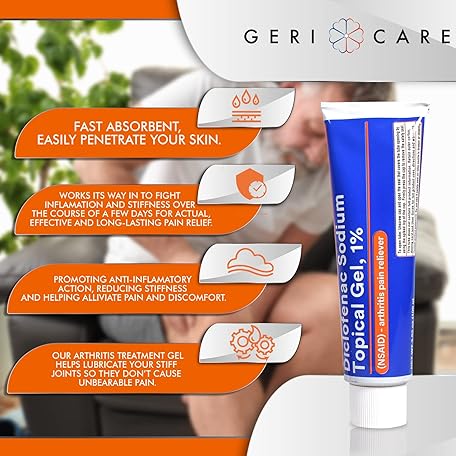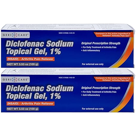 Thông tin sản phẩm GeriCare Topical Arthritis Pain Relief Gel Diclofenac Sodium 1% (NSAID) Hand Wrist Elbow Foot Ankle Knee Extra-Strength Pain Reliever- Anti-inflammatory Arthritis Pain Treatment, 3.53oz (2 Pack)