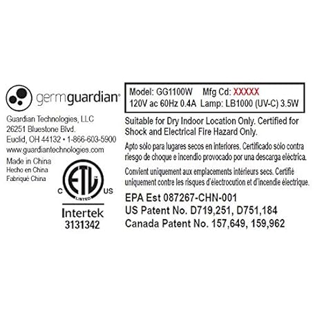 Thông tin sản phẩm Germ Guardian GG1100W 7” Pluggable Small Air Purifier, Small Room Wall Air Sanitizer, Freshens Air, UV-C Light Kills Germs, Reduces Odors from Pets, Cooking, Mold, GermGuardian, 1-Yr Wty (White)