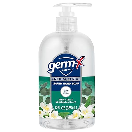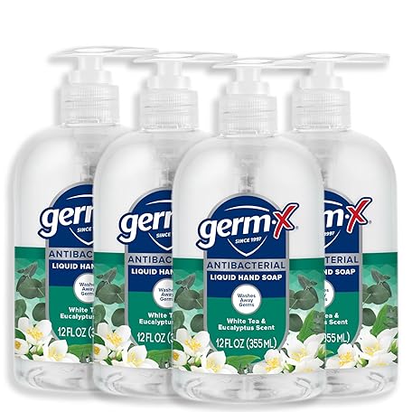 Thông tin sản phẩm Germ-X Antibacterial Hand Soap, 12 Oz (Pack 4), Moisturizing Liquid Hand Wash for Kitchen or Bathroom, pH Balanced & Dermatologist Tested, White Tea & Eucalyptus Scent, Pump Bottle