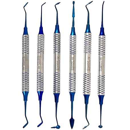 Sản phẩm German Stainless-Dental Composite Resin Filled Scraper Non Stick Filling Instruments Kit-Dental Filling Spatula,Double Headed Dental Restoration Tool Blue Titanium đang được bán với giá ưu đãi là $31.3266 tại nước Mỹ.
