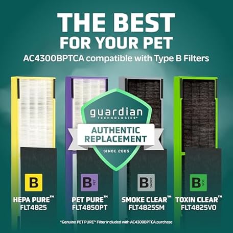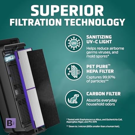 Thông tin sản phẩm GermGuardian 5-In-1 HEPA Air Purifier for Home, Pet Air Purifier with HEPA Air Filter & UV-C Light, AC4300BPTCA, 743 Sq. Ft., 22'' Tower, Black