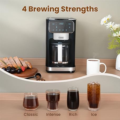 Gevi 12 Cup Programmable Drip Coffee Maker with Touch Screen, Fast and Strong Brew, Auto Shut-Off, 4-Hour Keep Warm Plate, Iced Coffee Option, Anti-Drip System, Permanent Filter