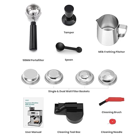 Thông tin sản phẩm Gevi Espresso Machine with Grinder & Milk Frother, 20 Bar Professional Coffee Maker for Home, Removable Water Tank, Steam Wand, Perfect for Espresso, Cappuccino, Latte