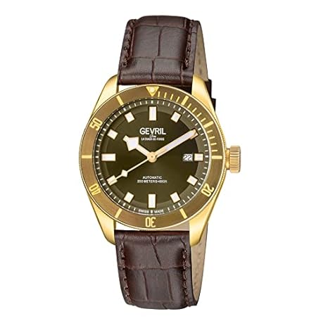 Gevril 48605-5 Men's Yorkville Swiss Automatic Watch, Genuine Leather Italian Green Strap with Tang Buckle