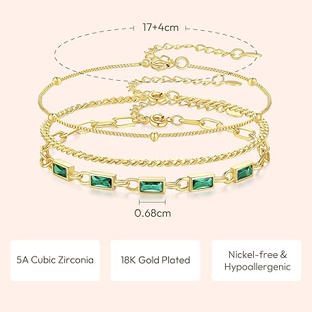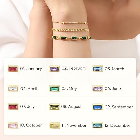 Thông tin sản phẩm GexTyde Gold Birthstone Bracelet for Women, 18K Gold Plated Layered Jewelry Bracelet Set, Women Dainty Stackable Bracelets Link Paperclip Chain Valentines Day Gift for Women