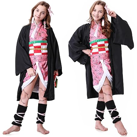 GeyZaho Halloween Cosplay Costumes Pink Anime Kimono Outfits Cape Festival Uniform Dress Up for Girls Women