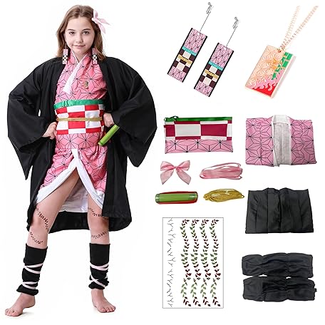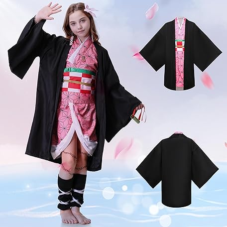 • GeyZaho Halloween Cosplay Costumes Pink Anime Kimono Outfits Cape Festival Uniform Dress Up for Girls Women