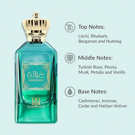 Thông tin sản phẩm Ghazala - Arabic Perfume for Women 3.4 Fl Oz - Eau De Parfum Turkish Rose, Peony, Musk, Petalia & Vanilla - Perfumes Arabes - Inspired by PDM's D.elina E.xclusif