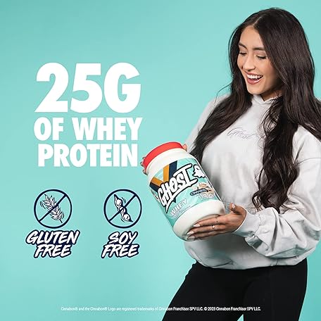 Thông tin sản phẩm GHOST Whey Protein Powder, Cinnabon - 2LB, 25G of Protein - Cinnamon Roll Flavored Isolate, Concentrate & Hydrolyzed Whey Protein Blend - Post Workout Shakes - Soy & Gluten Free