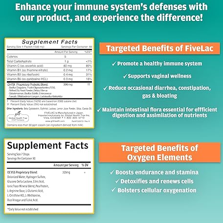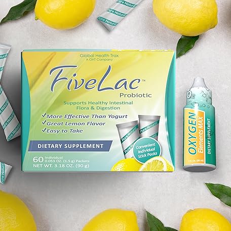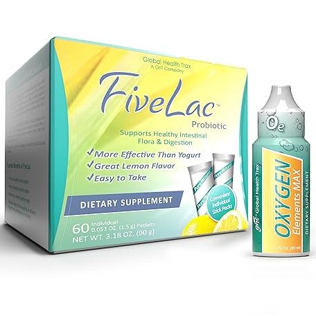 GHT - FiveLac Lemon Probiotic Powder Drink Mix, Probiotics for Women, Men, and Kids + Oxygen Elements Max Liquid Oxygen Drops - 1 Ounce Bottle/Cultivate Healthier Digestion and Cleanse Cells