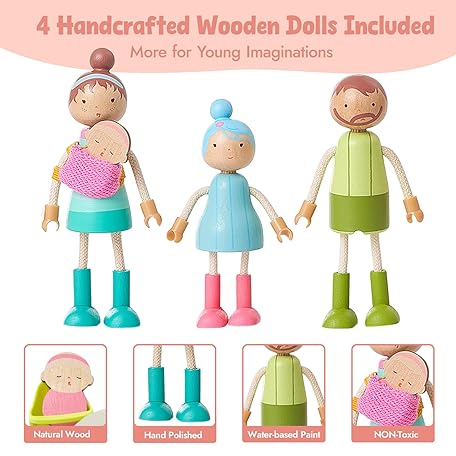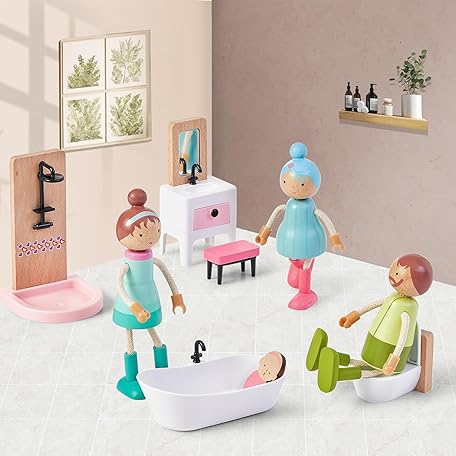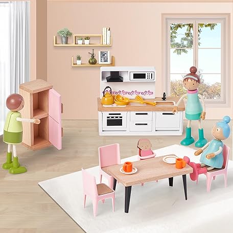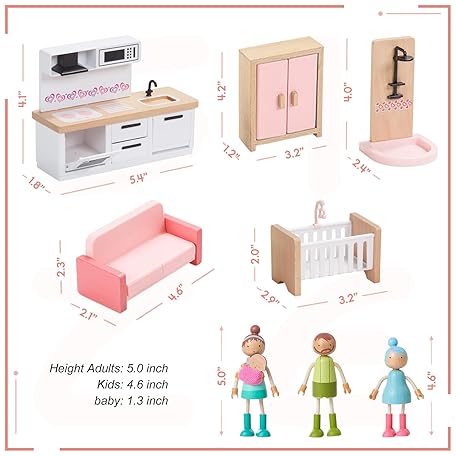 Thông tin sản phẩm Giant bean 36pcs Wooden Dollhouse Furniture Set with Dolls for 5 Rooms, Wood & Plastic Pink Dollhouse Accessories Pretend Play Furniture Toy Christmas Birthday Gift Toy for Kids Boys Girls Toddler 3+