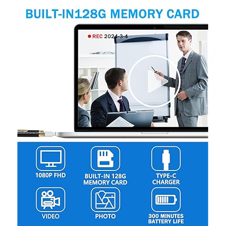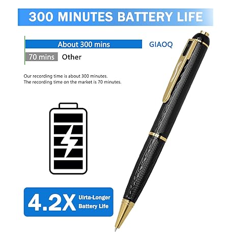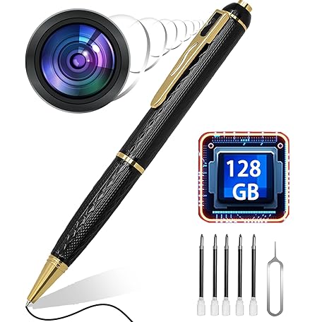 GIAOQ 128G Spy Camera, 1080P Mini Hidden Camera Pen with 300 Minutes Battery Life, Nanny Camera,Portable Nanny Video Recorder-One Button Security Camera for Home, Office