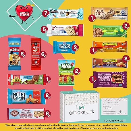 • Gift A Snack - Healthy Granola Breakfast Bars, Snack Box Care Package + Greeting Card (45 Count) Birthday Treats Gift Basket Nutritious Chips Food Assortments Variety