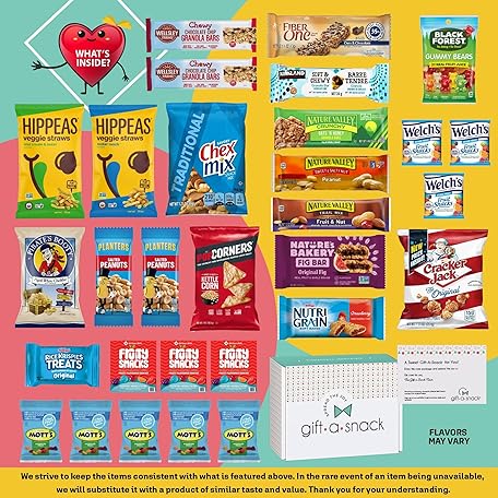 • Gift A Snack - Healthy Snack Box Care Package + Greeting Card (30 Count) Birthday Treats Gift Basket, Nutritious Granola Breakfast Bars Food Assortments & Variety