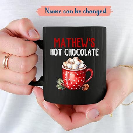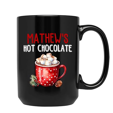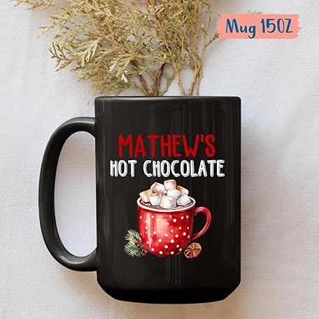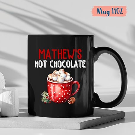 Gift for Christmas, Customized Name Hot Chocolate, Personalized Christmas Cups Gift for Friends/Family, Christmas Holiday Present, Custom Hot Chocolate Tea Cup, Black Coffee Mug 11oz 15oz