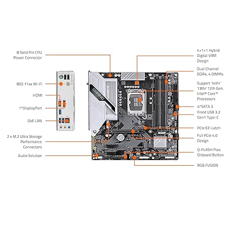 Thông tin sản phẩm GIGABYTE B760M Gaming Plus WiFi DDR4 LGA 1700 Intel B760 M-ATX Motherboard with DDR4, 2* M.2, PCIe 4.0, Front USB 3.2 Gen 1 Type-C, WiFi 6 GbE LAN, Q-Flash Plus, PCIe EZ-Latch