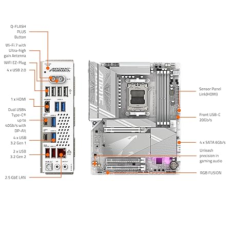 Thông tin sản phẩm GIGABYTE X870 AORUS Elite WIFI7 ICE AMD AM5 LGA 1718 Motherboard, ATX, DDR5, 4X M.2, PCIe 5.0, USB4, WIFI7, 2.5GbE LAN, EZ-Latch, 5-Year Warranty