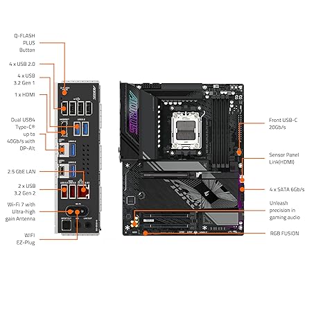 GIGABYTE X870E AORUS Elite WIFI7 AMD AM5 LGA 1718 Motherboard, ATX, DDR5, 4X M.2, PCIe 5.0, USB4, WIFI7, 2.5GbE LAN, EZ-Latch, 5-Year Warranty