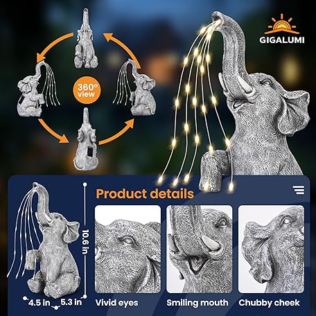 Thông tin sản phẩm GIGALUMI Solar Garden Decor Watering Elephant Statues Outdoor, Birthday Gifts for Women Mom Grandma Senior Elder, Elephant Ornament for Balcony, Garden, Patio, Yard, Lawn (Constant Lights Only)