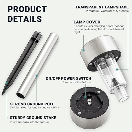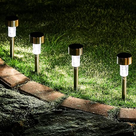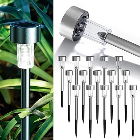 Thông tin sản phẩm GIGALUMI Solar Lights Outdoor Waterproof,16 Pack Stainless Steel LED Solar Garden Lights for Patio, Lawn, Yard and Landscape(Cold White)