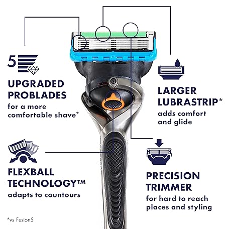 Gillette Fusion5 ProGlide Shaving Razor for Men, Razor Handle, 4 Razor Blade Refills, FlexBall Razor Handle and Precision Trimmer for Men
