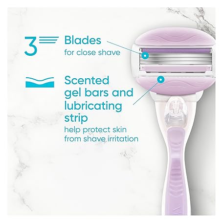 Thông tin sản phẩm Gillette Venus ComfortGlide Freesia Women's Razor Refills, 6 Refill Cartridges, Fits Venus Reusable Razor Handles, 3-Bladed with Built-in Shave Gel Bars