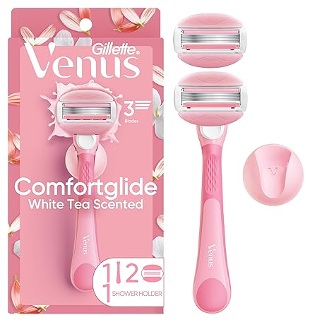 Thông tin sản phẩm Gillette Venus ComfortGlide Razor for Women, White Tea Scented Gel Bars, Includes 1 Reusable Razor Handle + 2 Refills, Built-in Shave Gel Bars, Holiday Gifts for Women