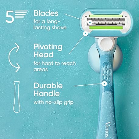 Thông tin sản phẩm Gillette Venus Extra Smooth Razor for Women, Includes 1 Reusable Razor Handle + 4 Refills, 5-Bladed, Ergonomic No-Slip Gel Handle and Shower Holder, Holiday Gifts for Women