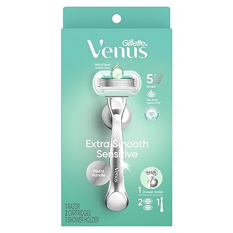 Thông tin sản phẩm Gillette Venus Extra Smooth Sensitive Razor for Women, Includes 1 Reusable Razor Handle + 2 Refills, for Sensitive Skin with Metal Handle and Shower Holder, Holiday Gifts for Women