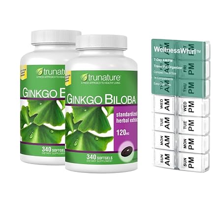• Gingko Biobla 120 mg 340 Softgels (Pack of 2) + 7-Day Travel Day & Night Pill Organizer