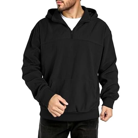 • GINGTTO Mens Quarter Zip Pullover Hoodie Corduroy Sweatshirt Men Mock Neck