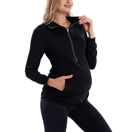 GINKANA Maternity Women's Long Sleeve Shirt Half Zipper Lapel Lightweight Casual Maternity Pullover with Pockets