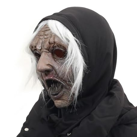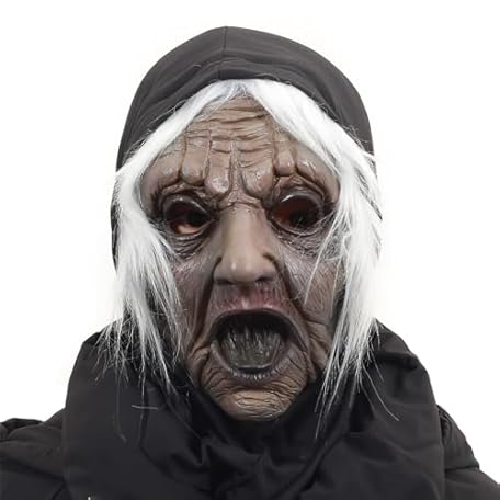 Thông tin sản phẩm Ginoba Halloween Costume Masks One Size Old Lady Mask, Black Face, Pale Hair, Headscarf, Hollow Eyes Mens' masquerade For Halloween Party